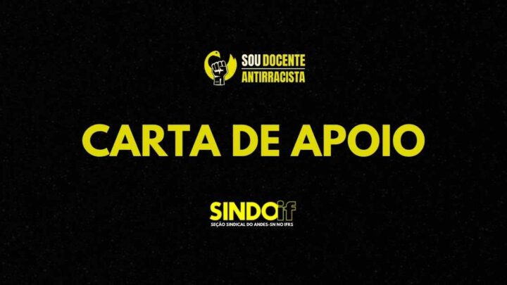O SindoIF vem, por meio desta nota, manifestar seu total apoio aos servidores Maiara Lopes e Gustavo Rodrigues, respectivamente, Técnica em Assuntos Educacionais do Campus Osório e professor do Campus Rolante, que recentemente denunciaram casos de racismo. A colega, no contexto da organização da festa junina do Campus Osório; o colega, impedido por um segurança,…
